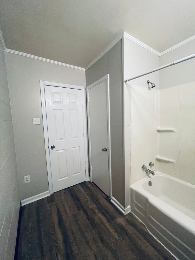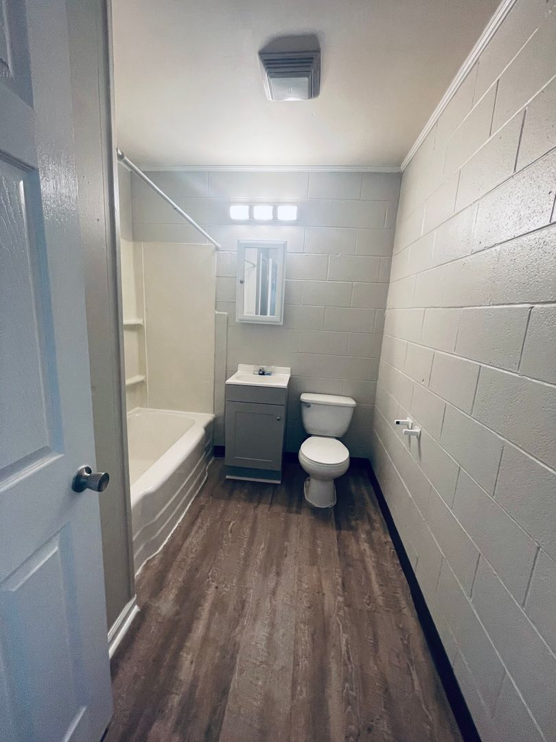 - Full bathroom with closet storage