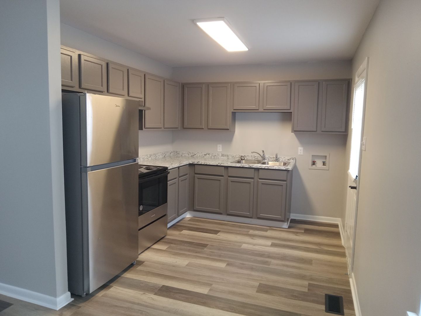 Our apartments offer a comfortable and convenient living experience with this 1-bedroom apartment. This unit has recently undergone renovations, ensuring that your apartment is modern and stylish. Inside you, you will find a refrigerator and electric stove, providing you with the essentials for cooking and storing your favorite meals. It also comes with washer and dryer hook-ups, allowing you to conveniently do your laundry from the comfort of your own home.